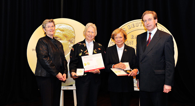 | Von links nach rechts: Christa Bremer, Vize-Präsidentin des VDH, Dagmar Hintzenberg-Freisleben, Erika Rödde, Christofer Habig, VDH-Präsident | |||